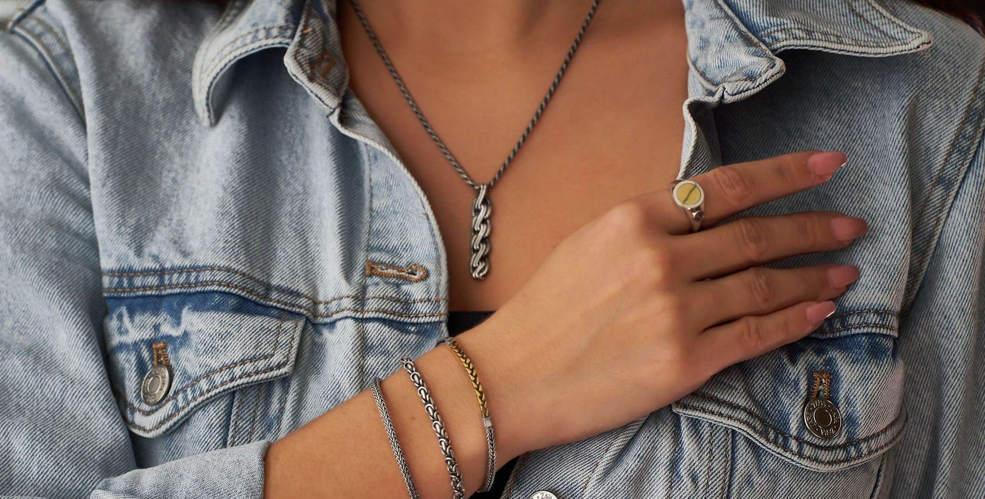 Silk Jewellery is een eigentijds sieradenmerk dat bekend staat om zijn unieke ontwerpen en vakmanschap. Met gebruik van hoogwaardige materialen zoals zilver en leer, creëert Silk Jewellery stijlvolle en opvallende sieraden. Van armbanden tot kettingen en ringen, hun collectie weerspiegelt een combinatie van elegantie, verfijning en creativiteit.